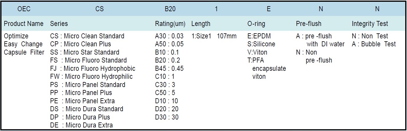 The OEC filter is designed for extremely small resist pump installations. It is specifically designed for small volume dispense systems which require the smallest footprint area. The OEC filter unit consists of a quick disconnect head manifold and a polypropylene capsule.